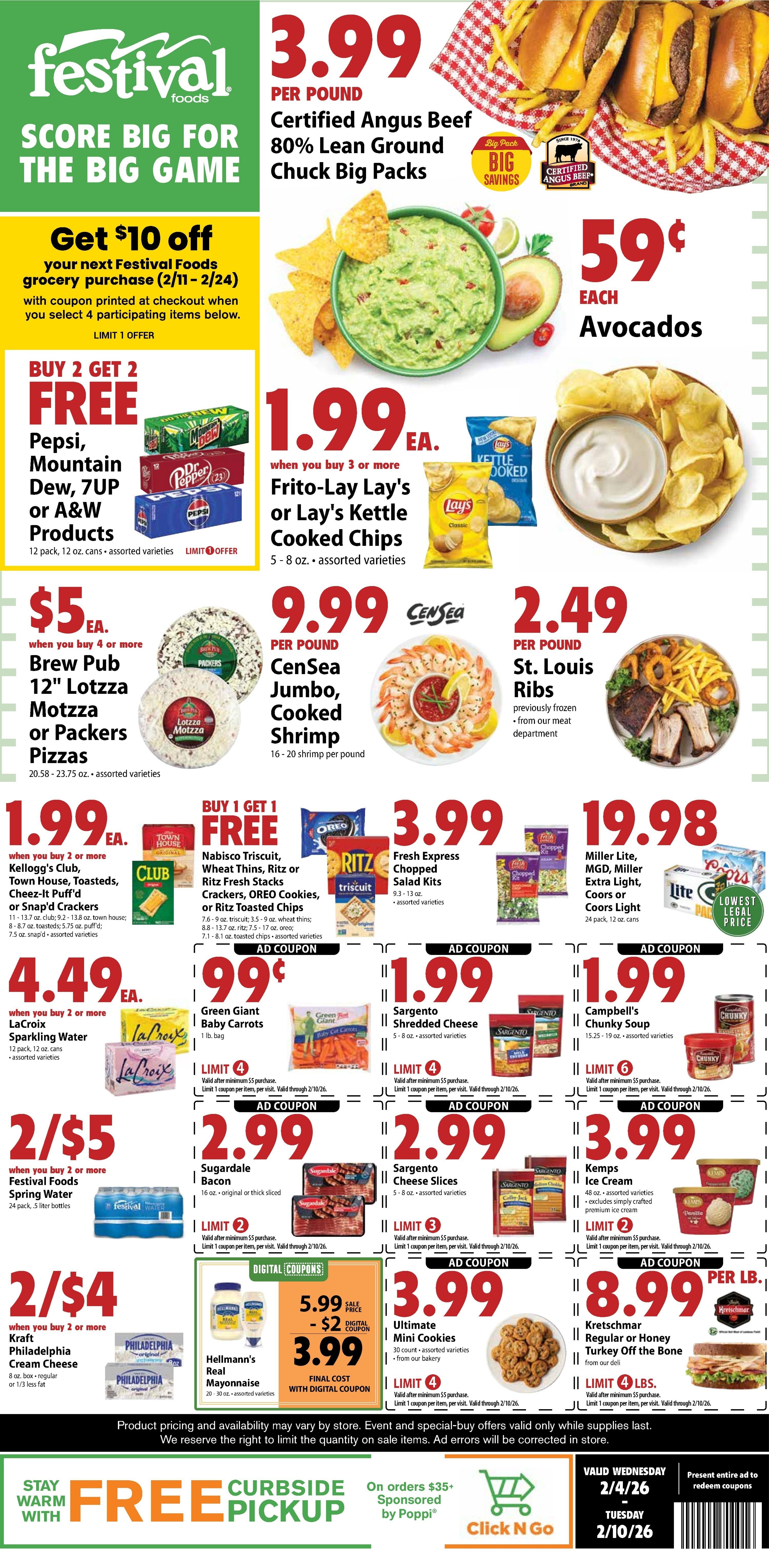 Want to avoid the wait? Opt for curbside pickup at your nearest Festival Foods. Pick a time that’s convenient for you and still enjoy savings with the Festival Foods weekly ad deals when you order online for pickup